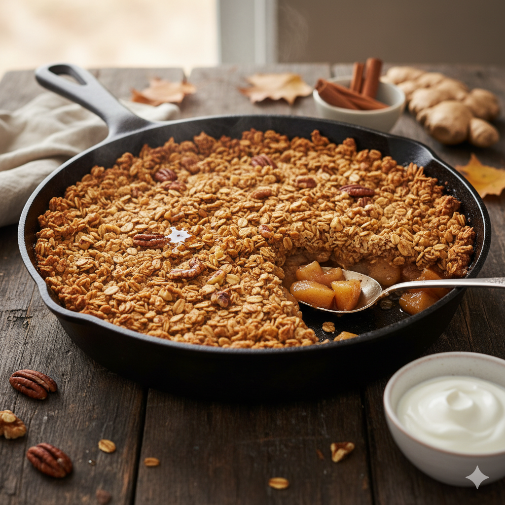 This recipe is a great substitution for a slice of pie and ice cream. You will get some nutrients from the fruit, fiber from the topping, and a boost of protein if you serve it with Greek yogurt. This recipe feels like a nice warm hug at the end of the day!